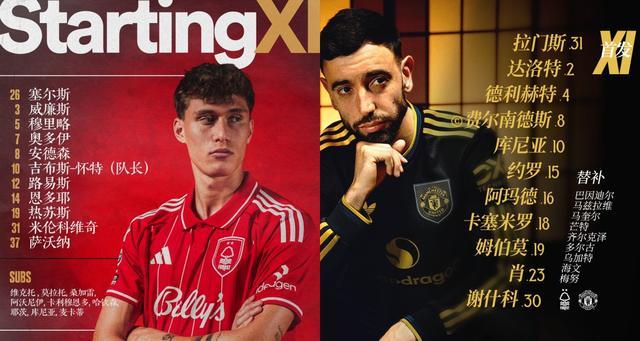 曼联1年多依然无法取得英超4连胜,主教练阿莫林固执推行的343战术再次受球迷质疑,此战令队长B费与卡塞米罗搭档双后腰。