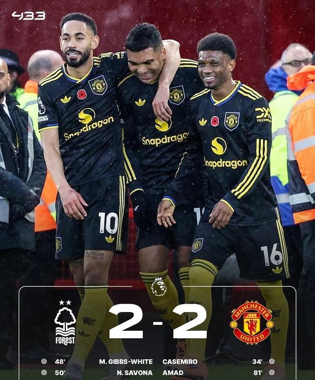 对于森林2-2曼联这场比赛,有球迷表示:曼联有点可惜,但也有点幸运!